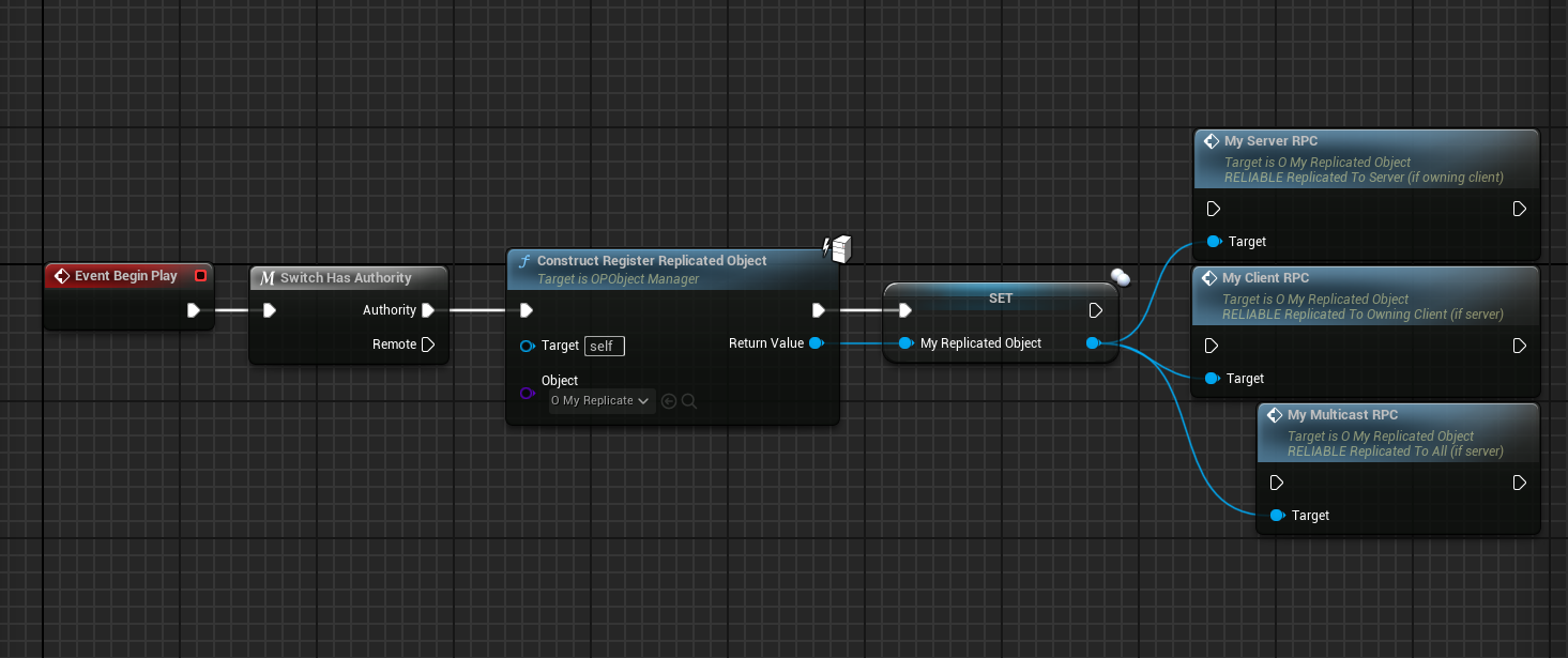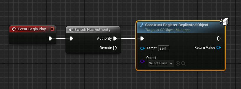 <figure><img src="https://3607888507-files.gitbook.io/~/files/v0/b/gitbook-x-prod.appspot.com/o/spaces%2FQSyzdwtAZykVKFu5CsNh%2Fuploads%2F3Tr9K1FqUSFec22gRzbH%2Fimage.png?alt=media&#x26;token=802edc96-746b-4fb6-b452-177a0e7ddb30" alt=""><figcaption><p>Now you're going to replicate your previous OPObject created. For that, you just need to call the ConstructRegisterReplicatedObject function on the server side only. The function will take the OPObject Class and return the constructed OPObject.</p></figcaption></figure>